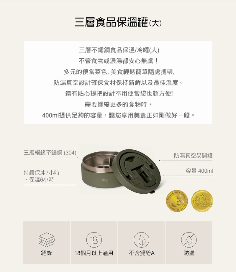 ✔通過SGS 認證德國LFGB食品容器驗證合格✔三層絕緣不鏽鋼 (304)✔易開設計無預旋轉即可垂直開蓋✔內有可拆式隔片食物分隔更靈活✔防漏易鎖系統✔不含雙酚A✔可持續7小時的保冰及6小時的保溫✔可拆卸矽膠條,便於清洗✔手洗後晾乾即可✔不適用於洗碗機、微波及冷凍✔上蓋耐熱溫度建議為0°C- 70°C