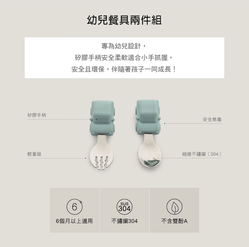 ✔通過德國LFGB食品容器驗證合格✔不含 BPA ✔餐具由絕緣不鏽鋼 (304)製成✔矽膠手柄安全且適合小手抓握,讓寶寶可以輕鬆入口✔可練習寶寶獨立用餐✔吸睛可愛的造型,讓寶寶能開心享用餐點✔適用於洗碗機。不適合微波爐尺寸: 9.5 x 5.3cm重量:66g材質:食品安全矽膠、不鏽鋼 (304)