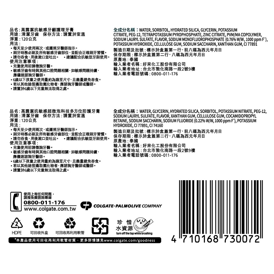 ◎Brand:Colgate 高露潔 ◎Specifications: 120g克 x 4 x 1SET組