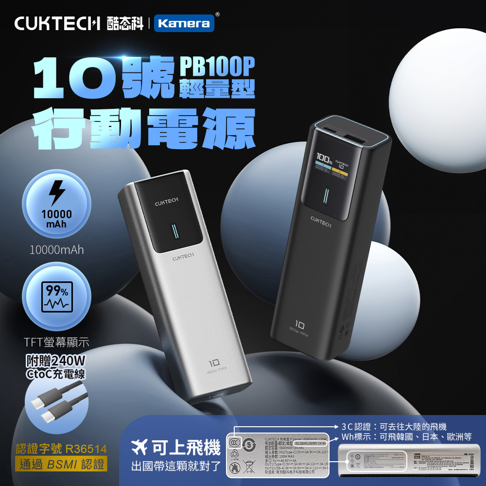 產品特點● Wh+CCC標示,可上飛機,搭乘中國航班沒問題。● 單手可握,10000mAh容量,簡潔時尚,便於隨身攜帶。● TFT 彩色螢幕讓,可清晰顯示電壓、電流、功率、電量百分比,無需專業工具即可輕鬆監控,操作更便捷有趣。● TYPE-C單口輸出最高可達120W*,多口同時使用總功率可達150W MAX,無論是手機、平板還是筆電,都能輕鬆應對!● 長度僅約143mm,重量約 287g,輕巧便攜,單手即可輕鬆拿取,讓出行無壓力。 ● 全面相容市面上的智慧型手機、筆電、平板、Switch 等主流電子設備,支援 FCP、AFC、QC3.0、PD3.1、Apple 2.4A、PPS、UFCS融合快充 及小米 120W 快充等多種協議,滿足各類快充需求。● 具備小電流模式,專為藍牙耳機、智能手錶等低功率設備打造,兼顧全面相容與安全充電。● 採用18650電芯,具備過熱、短路、過充等多重保護,外殼採用 V0 等級防火材料與高品質電路晶片,確保穩定放電和使用安全,讓您充電無後顧之憂。● 通過 CE、FCC、KC及台灣 BSMI 認證,確保符合國際安全、品質標準與環保要求,為您提供更安全、可靠的使用體驗!*註:單口120W快充僅支援小米14Pro手機,且需搭配對應數據線。