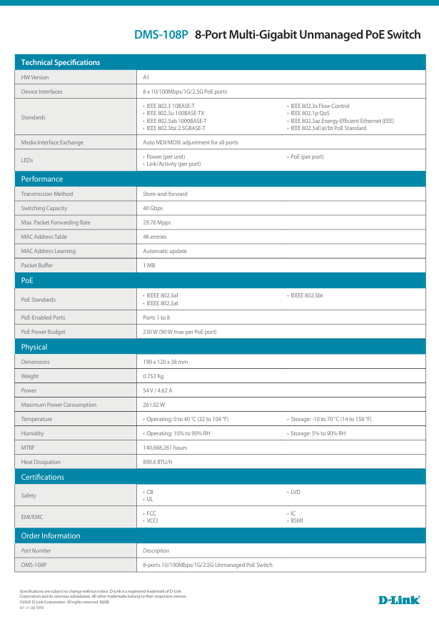 • 具8個10/100Mbps/1G/2.5G 多速率乙太網路PoE埠