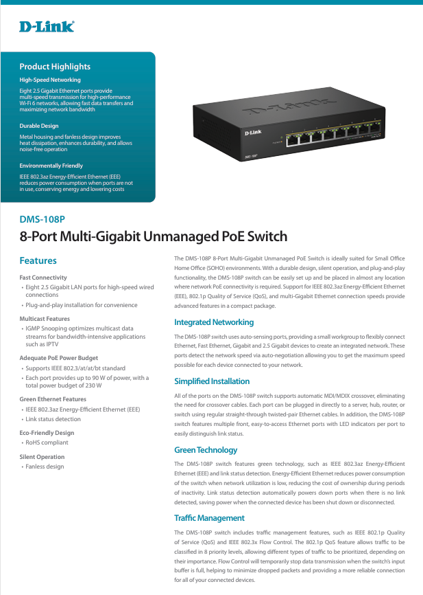 昌運監視器 D-LINK 友訊 DMS-108P 8埠無網管多網速交換器