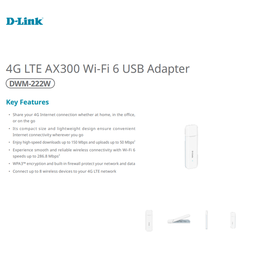 昌運監視器 D-LINK 友訊 DWM-222W 4G LTE AX300 Wi-Fi 6 USB 行動網路卡