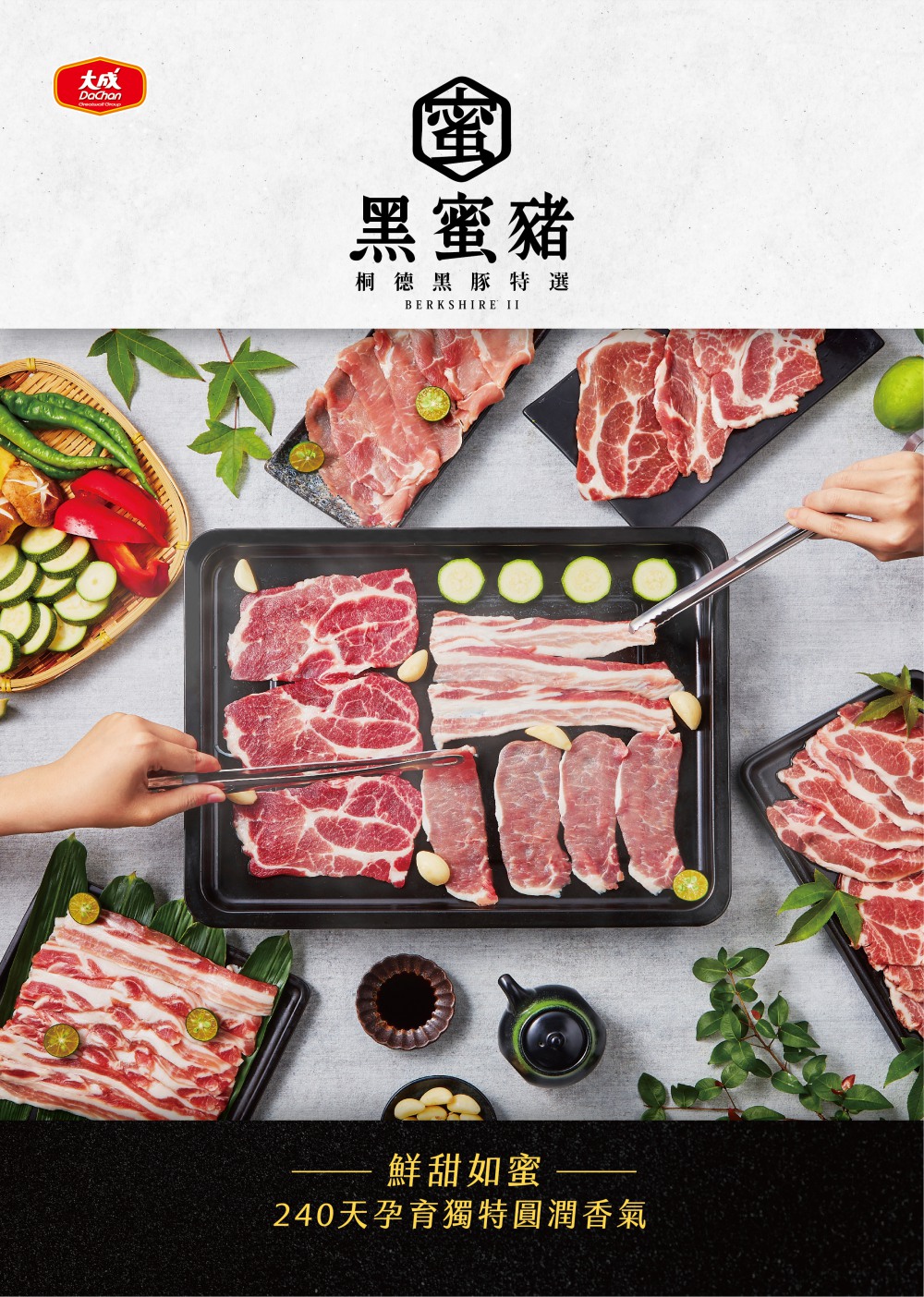 ●大成獨家培育桐德黑豚二世,日本鹿兒島黑豚同種源●自然養成240天熟齡●台灣在地精心飼養,不使用生長激素、瘦肉精●獨特黑豚油脂香氣,霜降油花黃金比例,纖維細緻入口即化