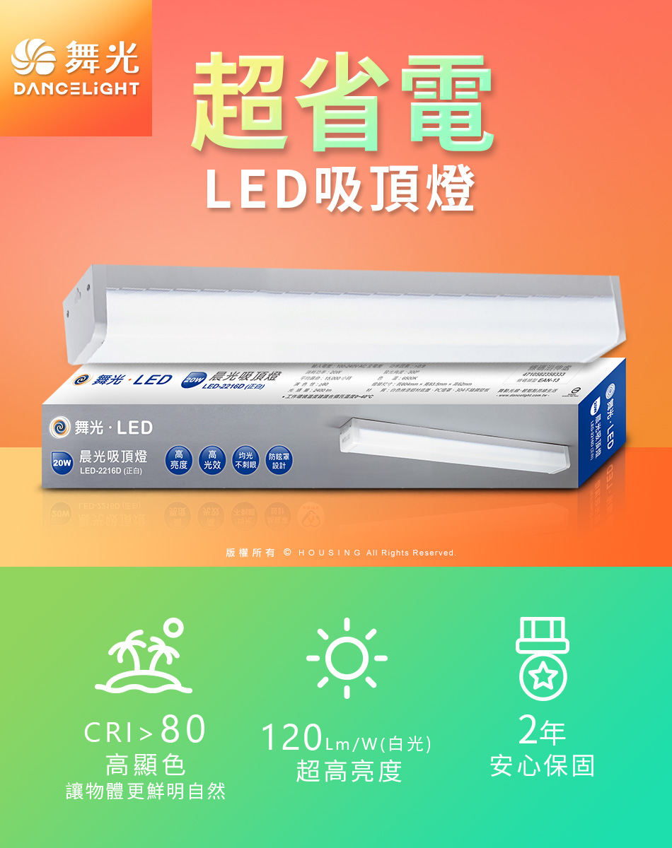 ⭐簡約新設計 一體成型時尚家居⭐防眩燈罩柔和均光⭐高光效120LM/W,吊吸兩用