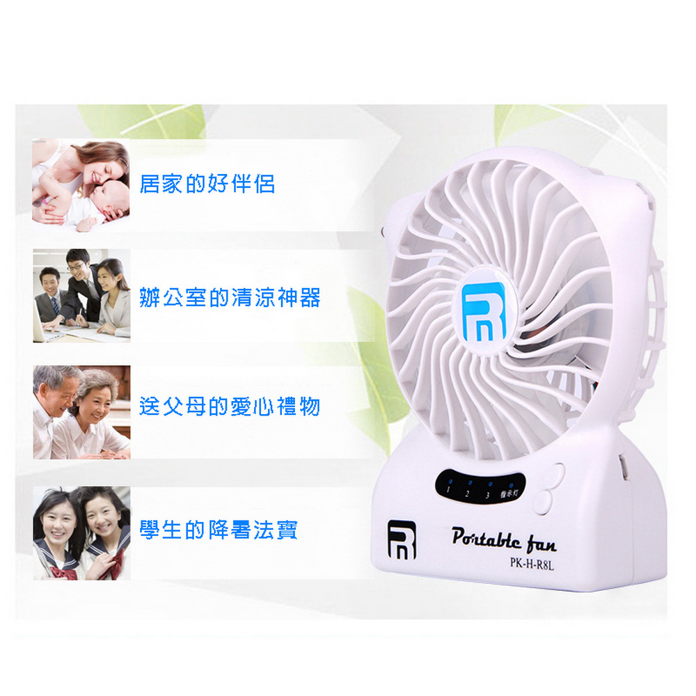 《商品介紹》送大容量鋰電池x2+充電線+吊繩四大好禮風速加倍,雙電池電量再加倍夏日居家或郊遊外出的最佳良伴超強風力,3段變速可充電式風扇雙電池設計,使用時間更長馬達再精進,風速再加倍強力風扇+手機充電+LED照明+吊繩四大功能戶外活動的好涼伴輕巧好攜帶,酷夏降溫神器綠色環保,清涼消暑四角緊密保護防撞,減緩碰撞衝擊雙電池設計,使用時間更長馬達再精進,風速再加倍強力風扇+手機充電+LED燈+吊繩 四大功能超強馬達馬力,轉速極快,提供強大風力風扇有三段轉速調節:弱中強可USB供電,也可由鋰電池供電輕巧好攜帶,可以手持或座立可以一邊充電,一邊享受風扇的涼爽使用一般USB +5V供電使用方便,操作簡單外出時,可以緊急對手機充電夜晚時,可以打開LED燈照明時尚設計,有吊繩孔,可吊掛或架立可拆卸式電池,隨時可更換電池居家辦公,外出郊遊都適宜本產品雖已設計多項安全防護,仍然建議未成年的兒童,需有家長陪伴使用!!!使用本產品時,請勿讓幼兒拿的到或玩耍,以免造成危險!!!