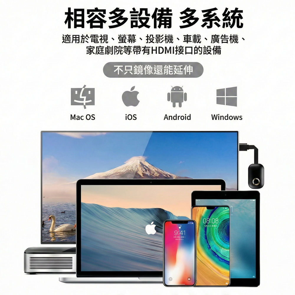 《商品特色》隨時隨地 大螢幕娛樂操作簡單 影音投影■一機多用,教學/娛樂/導航全搞定■免安裝任何軟體■無線連結,影音同步分享■支援蘋果/安卓/電腦無線投影顯示■可電腦直接電視同步顯示■高畫質輸出,高速穩定傳輸《商品介紹》隨著智慧型裝置普及,手機、平板、電腦已成為日常不可或缺的工具。但螢幕太小往往影響學習與娛樂體驗。現在,只要一個 無線投影器,就能輕鬆將螢幕畫面同步到電視或投影機,大螢幕享受更清晰、更震撼!隨插即投:操作簡單,免驅動免APP。跨平台支援:支援 iOS / Android / Windows / Mac OS。高畫質輸出:清晰畫質 ,清晰不卡頓。穩定傳輸:低延遲設計,影音同步。輕巧便攜:出差、上課、居家,一機搞定。【應用場景】居家娛樂:追劇、看電影,大螢幕更沉浸。遊戲對戰:手機秒變遊戲主機,刺激加倍。教育教學:課堂同步投影,互動更生動。會議簡報:商務展示更專業,告別繁瑣連線。汽車導航:手機地圖投影到大螢幕,安全又直觀。《注意事項》1.如果要使用在汽車的螢幕投影,請先確認汽車是否有HDMI或AV影音輸入,請確認後再進行購買。2. 本商品是HDMI影音傳輸介面,如果是汽車是AV(黃白紅三色插孔)則需要另外自行準備HDMI轉AV的轉換器才可以使用。《商品配備》無線影音鏡像傳輸器 x1USB充電器 x1說明書 x1《商品規格》廠牌: Dawise型號: 10代WD06顏色: 黑支援的設備: 蘋果,安卓,微軟裝置支援影音同步傳輸模式: AirPlay/Miracast/DLNA/WIDIUSB供電(DC+5V)HDMI連接介面產地: 中國產品保固: 主機保固3個月,配件/贈品保固1個月,保固範圍不包含人為損壞。《注意事項:》產品顏色可能會因為相機拍照色偏因素而有差異,請以實際出貨為準。《NCC認證字號》 CCAJ15LP0250T3
