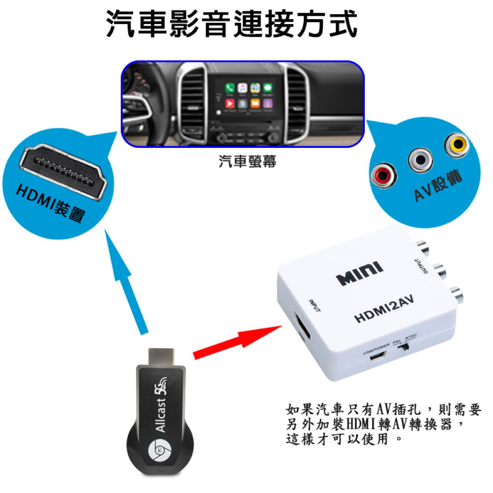 《商品特色》真正高畫質無線影音傳輸支持H.265高畫質無線投影操作簡單 影音投影■支援高畫質影音■免安裝任何軟體■無線連結,影音同步分享■支援蘋果/安卓/電腦無線投影顯示■可電腦直接電視同步顯示■支持Airplay/Miracast/WIDI/DLNA影音同步傳輸模式《商品介紹》隨著智慧型裝置普及,手機、平板、電腦已成為日常不可或缺的工具。但螢幕太小往往影響學習與娛樂體驗。現在,只要一個 無線投影器,就能輕鬆將螢幕畫面同步到電視或投影機,大螢幕享受更清晰、更震撼!隨插即投:操作簡單,免驅動免APP。跨平台支援:支援 iOS / Android / Windows / Mac OS。高畫質輸出:清晰畫質 ,清晰不卡頓。穩定傳輸:低延遲設計,影音同步。輕巧便攜:出差、上課、居家,一機搞定。【應用場景】居家娛樂:追劇、看電影,大螢幕更沉浸。遊戲對戰:手機秒變遊戲主機,刺激加倍。教育教學:課堂同步投影,互動更生動。會議簡報:商務展示更專業,告別繁瑣連線。汽車導航:手機地圖投影到大螢幕,安全又直觀。《注意事項》1.如果要使用在汽車的螢幕投影,請先確認汽車是否有HDMI或AV影音輸入,請確認後再進行購買。2. 本商品是HDMI影音傳輸介面,如果是汽車是AV(黃白紅三色插孔)則需要另外自行準備HDMI轉AV的轉換器才可以使用。《商品配備》無線影音鏡像傳輸器 x1WiFi模組線 x1說明書 x15大好禮: HDMI傳輸線x1 + HDMI轉接頭x1 + USB充電器(2A)x1 +電源開關插座x1 + 手機指環扣支架x1《商品規格》廠牌: Dawise型號: WD64顏色: 黑支援的設備: 蘋果,安卓,微軟裝置支援影音同步傳輸模式: AirPlay/Miracast/DLNA/WIDIUSB供電(DC+5V)HDMI連接電視產地: 中國大陸產品保固: 主機保固3個月,配件/贈品保固1個月,保固範圍不包含人為損壞。《NCC認證字號》 CCAJ14LP398DT3