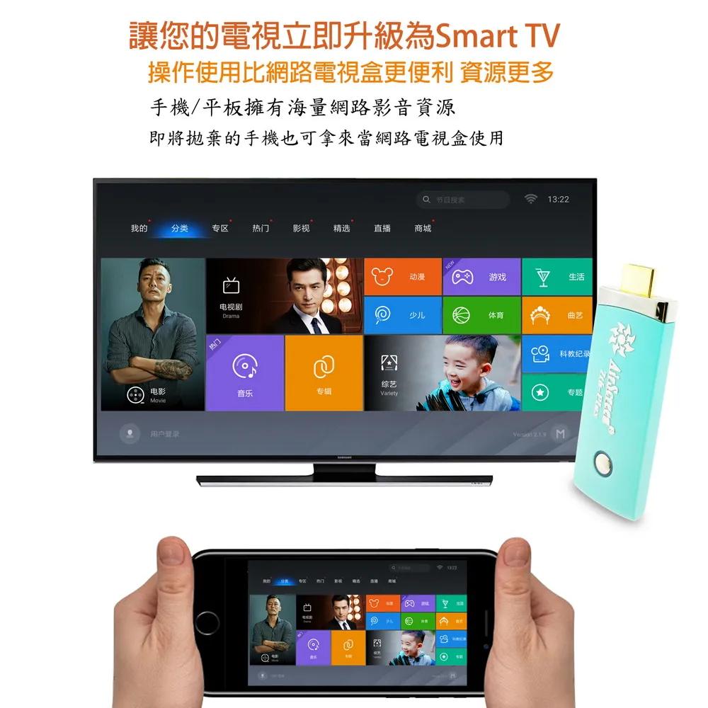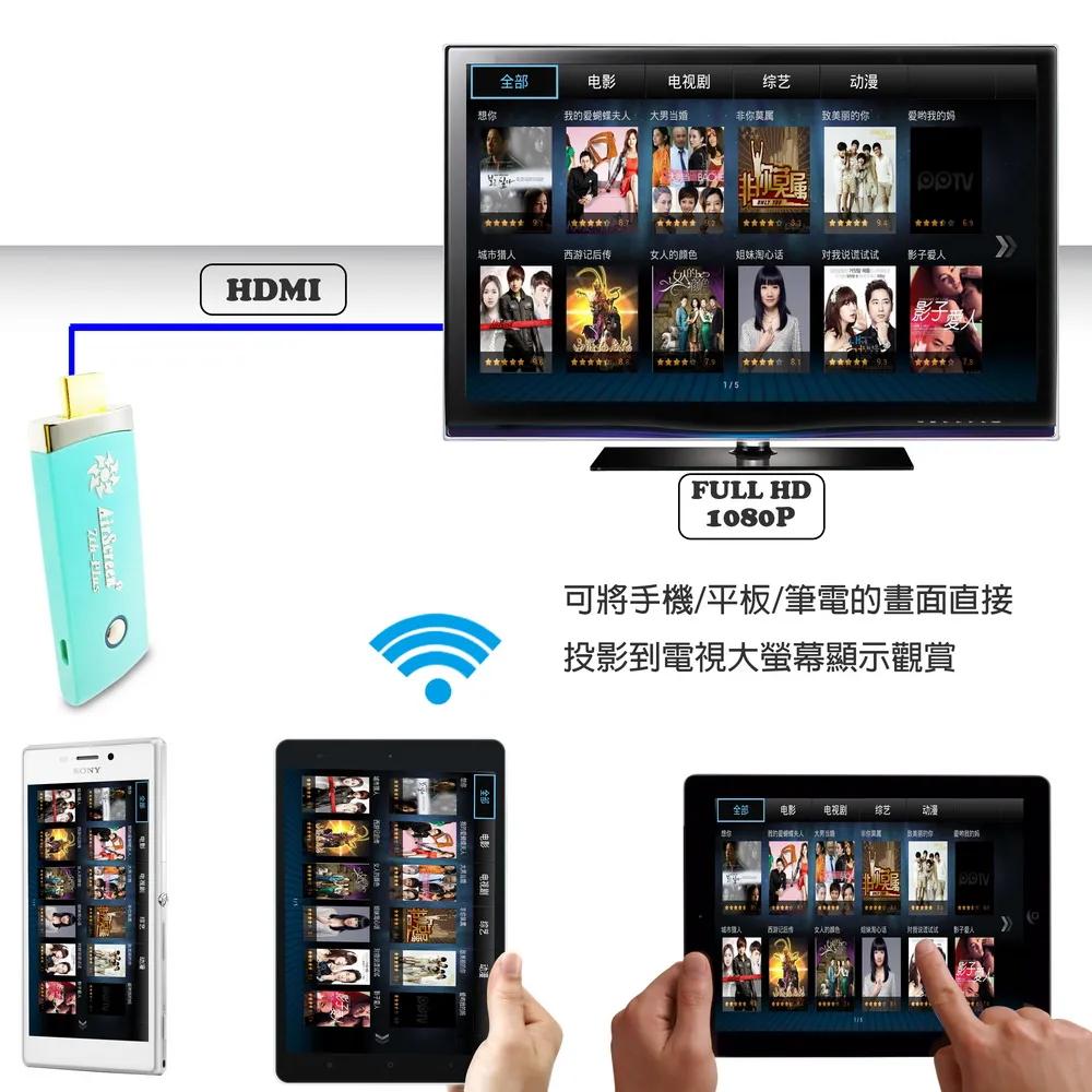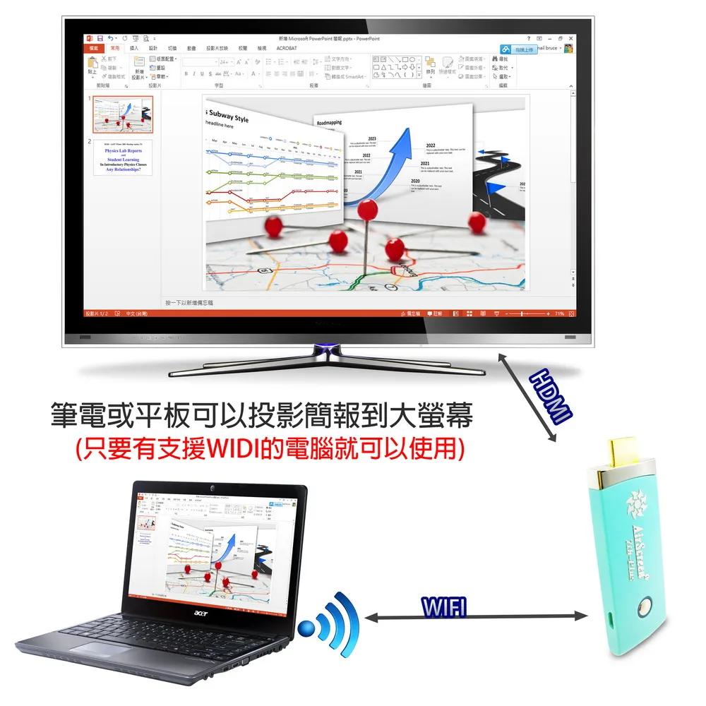 隨時隨地大螢幕娛樂操作簡單影音投影一機多用,教學娛樂導航全搞定免安裝任何軟體無線連結,影音同步分享支援蘋果/安卓/電腦無線投影可電腦直接電視同步顯示高畫質輸出,高速穩定傳輸《商品介紹》隨著智慧型裝置普及,手機、平板、電腦已成為日常不可或缺的工具。但螢幕太小往往影響學習與娛樂體驗。現在,只要一個 無線投影器,就能輕鬆將螢幕畫面同步到電視或投影機,大螢幕享受更清晰、更震撼!隨插即投:操作簡單,免驅動免APP。跨平台支援:支援 iOS / Android / Windows / Mac OS。高畫質輸出:支援 Full HD ,清晰不卡頓。穩定傳輸:低延遲設計,影音同步。輕巧便攜:出差、上課、居家,一機搞定。【應用場景】居家娛樂:追劇、看電影,大螢幕更沉浸。遊戲對戰:手機秒變遊戲主機,刺激加倍。教育教學:課堂同步投影,互動更生動。會議簡報:商務展示更專業,告別繁瑣連線。汽車導航:手機地圖投影到大螢幕,安全又直觀。《注意事項》1.如果要使用在汽車的螢幕投影,請先確認汽車是否有HDMI或AV影音輸入,請確認後再進行購買。2. 本商品是HDMI影音傳輸介面,如果是汽車是AV(黃白紅三色插孔)則需要另外自行準備HDMI轉AV的轉換器才可以使用。《商品配備》無線影音鏡像傳輸器 x1說明書 x14大好禮: USB充電器x1 + USB供電線x1 + HDMI延長線x1 + 手機支架x1《商品規格》廠牌: Dawise型號: 七代WD37顏色: 青綠支援的設備: 蘋果,安卓,微軟裝置支援影音同步傳輸模式: AirPlay/Miracast/DLNA/WIDIUSB供電(DC+5V)HDMI連接電視產地: 中國大陸產品保固: 主機保固3個月,配件/贈品保固1個月,保固範圍不包含人為損壞。《NCC認證字號》 CCAJ15LP0825T2