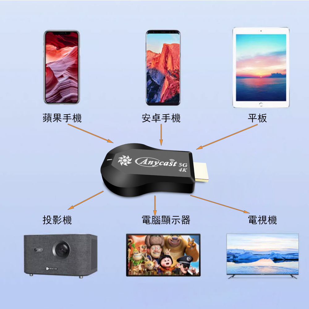 《商品特色》真正高畫質無線影音傳輸支持H.265高畫質無線投影操作簡單 影音投影■支援4K(3840×2160)超高清畫質■免安裝任何軟體■無線連結,影音同步分享■支援蘋果/安卓/電腦無線投影顯示■可電腦直接電視同步顯示■支持Airplay/Miracast/WIDI/DLNA影音同步傳輸模式《商品介紹》隨著智慧型裝置普及,手機、平板、電腦已成為日常不可或缺的工具。但螢幕太小往往影響學習與娛樂體驗。現在,只要一個 無線投影器,就能輕鬆將螢幕畫面同步到電視或投影機,大螢幕享受更清晰、更震撼!隨插即投:操作簡單,免驅動免APP。跨平台支援:支援 iOS / Android / Windows / Mac OS。高畫質輸出:清晰畫質 ,清晰不卡頓。穩定傳輸:低延遲設計,影音同步。輕巧便攜:出差、上課、居家,一機搞定。【應用場景】居家娛樂:追劇、看電影,大螢幕更沉浸。遊戲對戰:手機秒變遊戲主機,刺激加倍。教育教學:課堂同步投影,互動更生動。會議簡報:商務展示更專業,告別繁瑣連線。汽車導航:手機地圖投影到大螢幕,安全又直觀。《注意事項》1.如果要使用在汽車的螢幕投影,請先確認汽車是否有HDMI或AV影音輸入,請確認後再進行購買。2. 本商品是HDMI影音傳輸介面,如果是汽車是AV(黃白紅三色插孔)則需要另外自行準備HDMI轉AV的轉換器才可以使用。《商品配備》無線影音鏡像傳輸器 x1WiFi模組線x1說明書 x14大好禮: USB充電器x1 + HDMI傳輸線x1 + HDMI母對母轉接頭x1 + 手機支架x1《商品規格》廠牌: Dawise型號: 第10代WD65顏色: 黑支援的設備: 蘋果,安卓,微軟裝置支援影音同步傳輸模式: AirPlay/Miracast/DLNA/WIDIUSB供電(DC+5V)HDMI連接電視產地: 中國大陸產品保固: 主機保固3個月,配件/贈品保固1個月,保固範圍不包含人為損壞。《NCC認證字號》CCAJ14LP398ET5