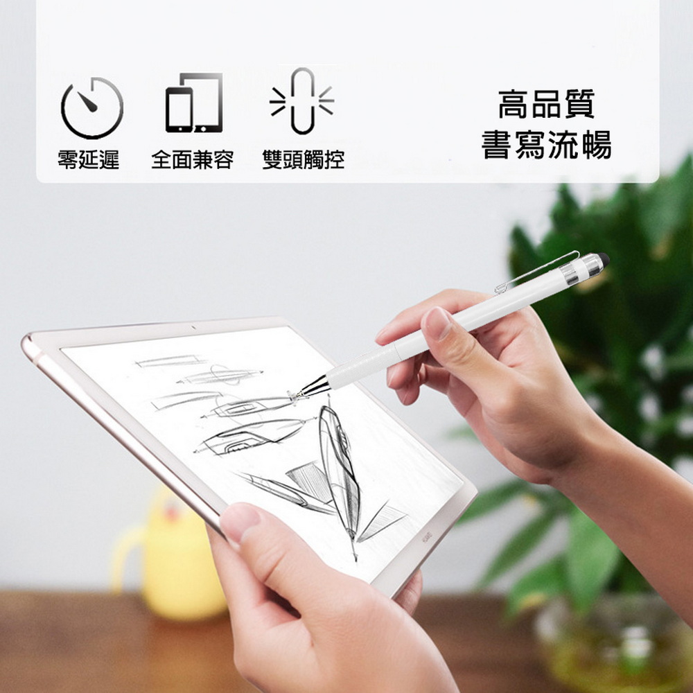 《商品介紹》攜帶方便,隨意書寫想畫就畫,想寫就寫免裝軟體,無需藍芽配對■書寫/塗鴉/繪圖最佳利器■適用所有電容式觸控螢幕■順滑好書寫■好握好寫,攜帶方便■雙頭觸控設計,觸控及書寫同時兼顧1. 本產品適用所有”蘋果/安卓/微軟”電容式觸控螢幕。2. 細字觸控筆,穩定/耐用/實用。3. 適用範圍更廣,可以使用在所有型號的iPad及iPhone, 更可以使用在電容式觸控螢幕的安卓平版及手機,微軟系統的電容式觸控螢幕也都適用。4. 書寫,精密圖稿設計,繪畫,塗抹都適合。