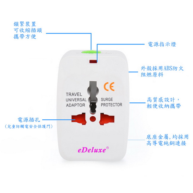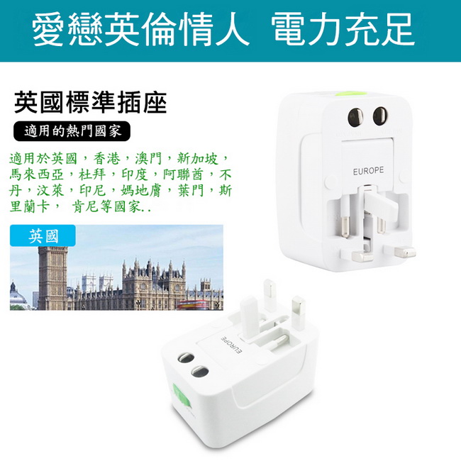 《商品介紹》出國旅遊必備的電源插座插頭All in One設計體積小,攜帶最方便■ 電源指示燈設計■ 收納方便,不占空間■ 插座安全防護設計■ 適用多國電源插座■All in One電源插頭插座設計■適用全球主要國家■插座安全防護設計■使用簡單,隨插即用■具電源指示燈■四種國際標準電源插頭■出國洽公旅遊,不可少的隨身插座■適用美規,歐規,英規,日規的電源插頭