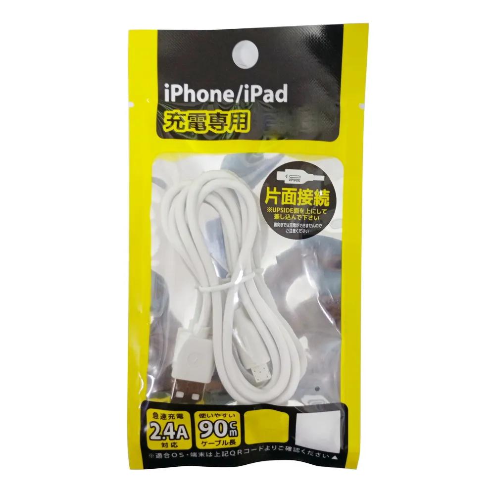 《商品介紹》簡單生活,從穩定快充開始每天都在用的線,為什麼不選快一點的?專為蘋果用戶設計的高效充電選擇iPhone/iPad快速回血線,90cm剛剛好!沒時間慢慢等?快速解決手機沒電焦慮電不等人,快充才是王道《商品介紹》1.支援 2.4A 急速充電,充電速度更快、更穩。2.適用 iPhone、iPad 各型號Lightning充電孔。3線長90 公分剛剛好,不過長也不過短,適合日常桌面、床邊使用。4.簡約白 / 沉穩黑,風格簡約美感5.請務必將接頭正面(UPSIDE朝上)插入裝置《注意事項》1. Lightning 單面接點設計,僅金屬排針面可充電,空白面無法充電2. 本產品為蘋果充電專用線3. 請務必將接頭正面(UPSIDE朝上)插入裝置