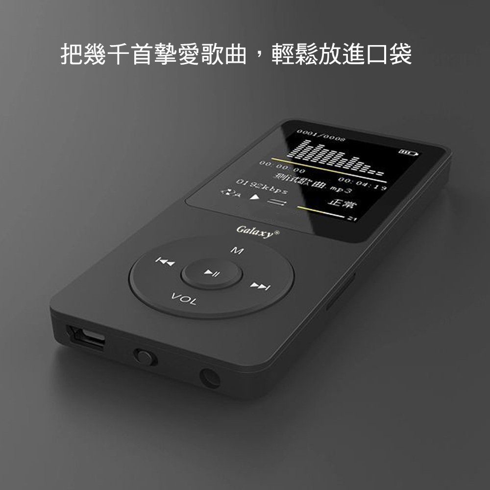 《商品介紹》聆聽世界,聲動人心~可看影片及照片1.8吋26萬色TFT螢幕高音質MP3音樂播放彩色照片及影片播放拒絕手機干擾,找回專注學習在這個訊息爆炸的時代,你是否渴望片刻的寧靜?放下沈重的手機,拒絕干擾。輕巧隨身聽帶你回歸音樂的本質。極致纖薄,小小尺寸,卻裝得下你所有的熱愛。不妥協的音質,獻給挑剔的耳朵,聽見最真實的聲音。戴上耳機,世界只剩下你和好音樂。晨跑、夜跑、健身房的最佳運動夥伴,輕巧隨行,節奏隨心。把音樂收進口袋,把生活留給自己。支援高品質音樂播放真正支援電影播放最高等級真正1.8吋大螢幕TFT屏26萬5000色彩色螢幕多種音效模式,讓您愛怎麼聽就怎麼聽運動的最佳伴侶,極致輕巧,幾乎感受不到重量。無論是晨跑、健身或通勤,電子相簿JPEG圖片瀏覽功能電子書TXT文字閱讀功能直覺操作: 實體按鍵設計,操作回饋感佳,盲操作也順手。背光時間設置、省電模式設置、螢幕亮度設置最新全彩圖形化界面操作,方便易懂讀書/通勤/運動,一機搞定可設置在多長時間內無按鍵操作屏幕變黑(0~30秒)使用電源是內置高效能鋰電池《注意事項》本商品內建記憶體,也可插卡擴充容量音樂需MP3格式,影片須轉檔為AMV檔案格式