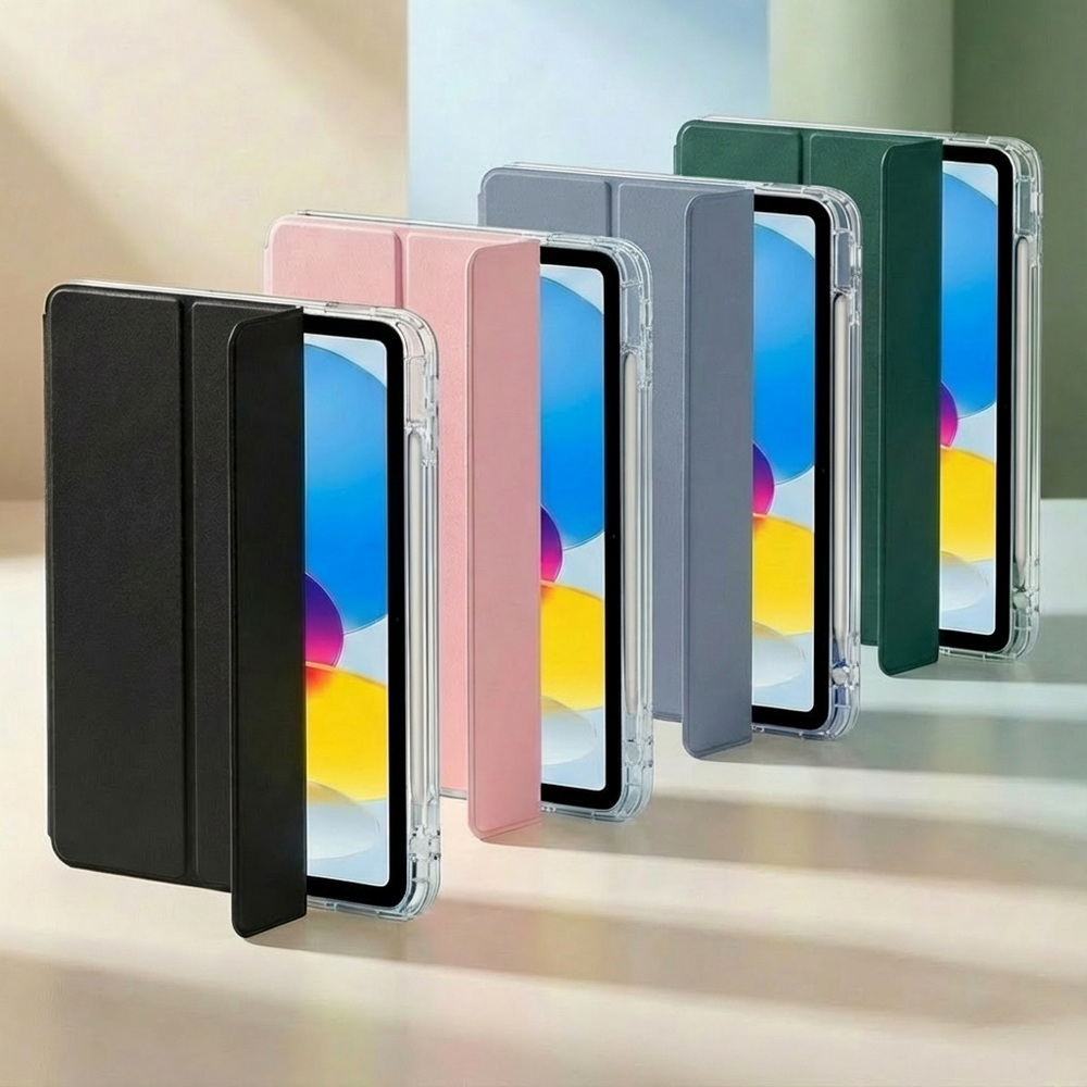 [TQ166 Tri-Fold Fully Transparent Back Cover] Apple iPad A16 (11th Gen) 11-inch Tablet Case (Compatible with iPad 10th Gen 10.9-inch) (Built-in Pencil Holder)