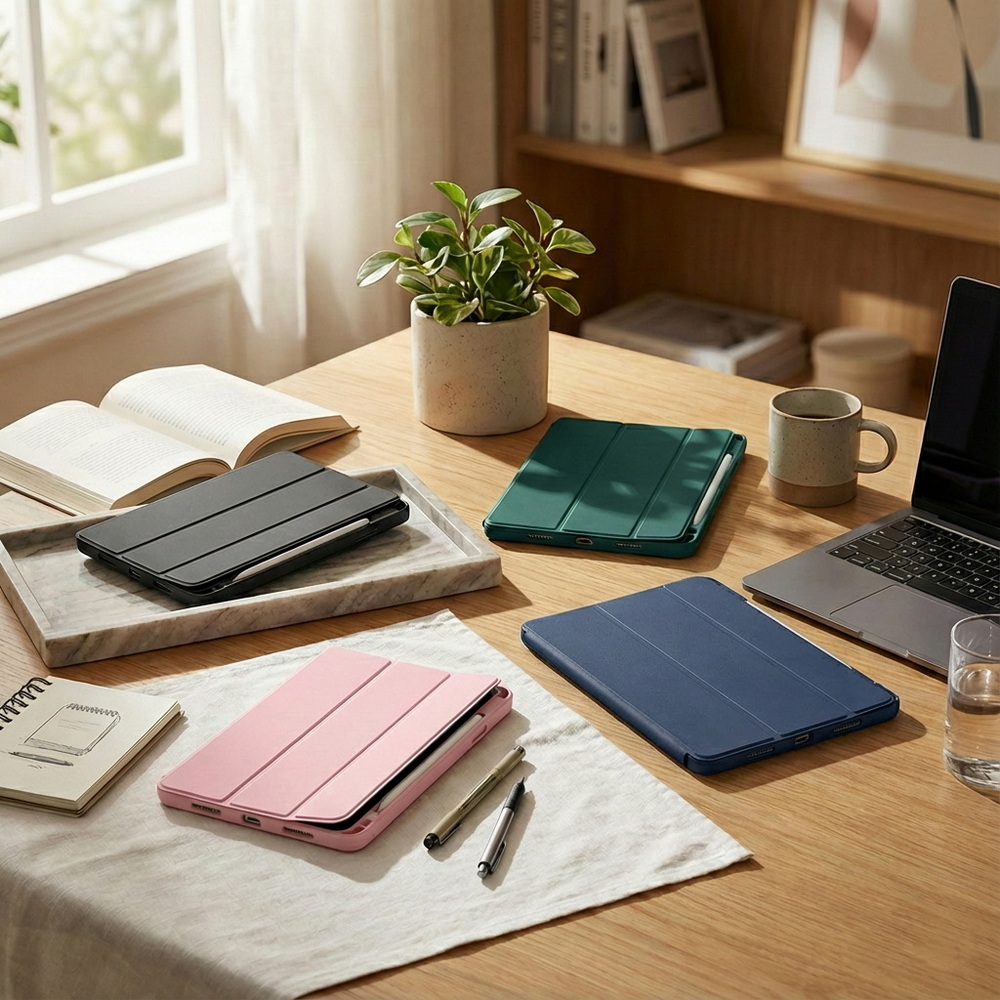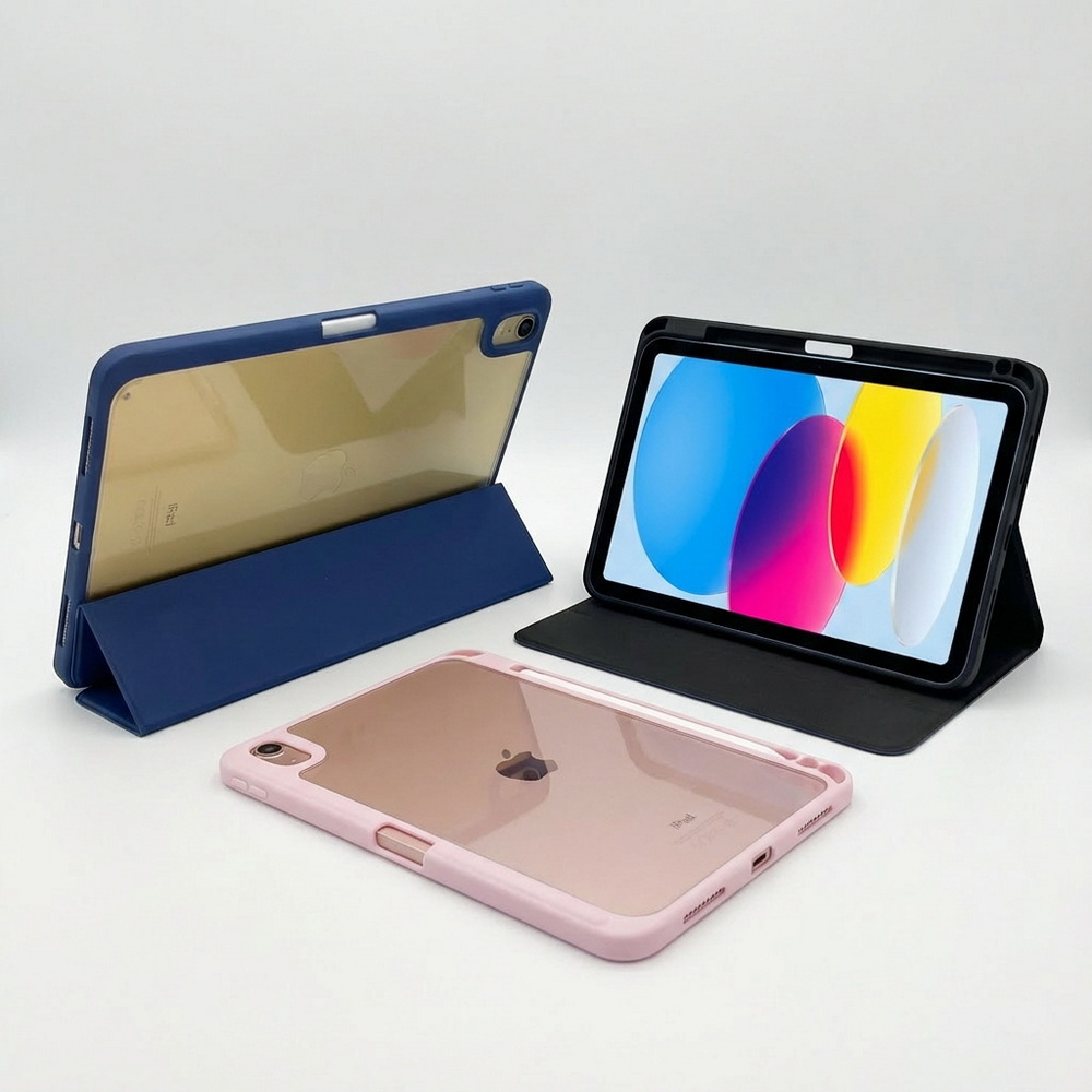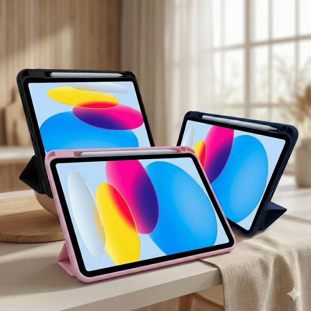 [SQ162 Tri-Fold Clean Gloss Back Panel] Apple iPad A16 (11th Gen) 11-inch Tablet Case (Compatible with iPad 10th Gen 10.9-inch) (Built-in Pencil Holder)