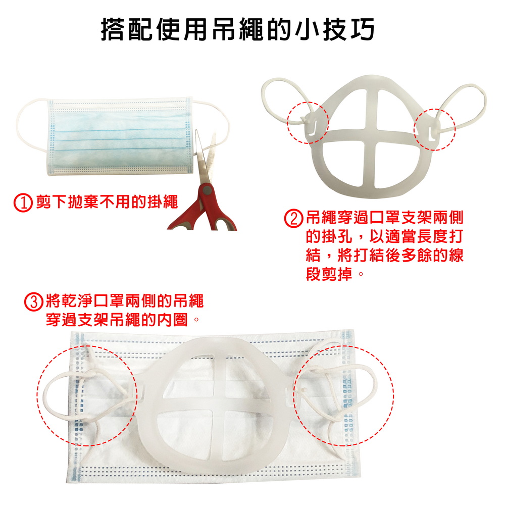 《商品介紹》搭配口罩的最佳神器解決長時間配戴口罩的困擾立體支撐 空氣流通更舒適人體工學設計 3D立體支撐適合不同臉型使用減少直接接觸口罩 增加安全使用便利 簡易扣掛舒適 透氣 清爽可水洗重複使用《注意事項》1. 本商品不含口罩,商品主體是口罩支架2. 本商品的尺寸只適合兒童的臉型及尺寸使用,不適合成人的口罩尺寸使用。3. 本商品是屬於衛生用品類,商品拆封後,不再享有退貨服務。