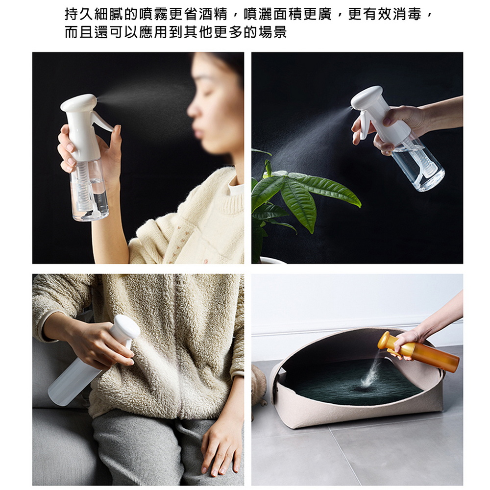 《商品介紹》超細噴霧,噴更久,範圍更廣可裝酒精消毒,防疫更升級霧化水分子,吸收快速可使用在各場合,保持空氣清新在乾燥地方,保濕肌膚保濕保養,身心愉悅好心情可噴灑在花草植物,保持植物青綠