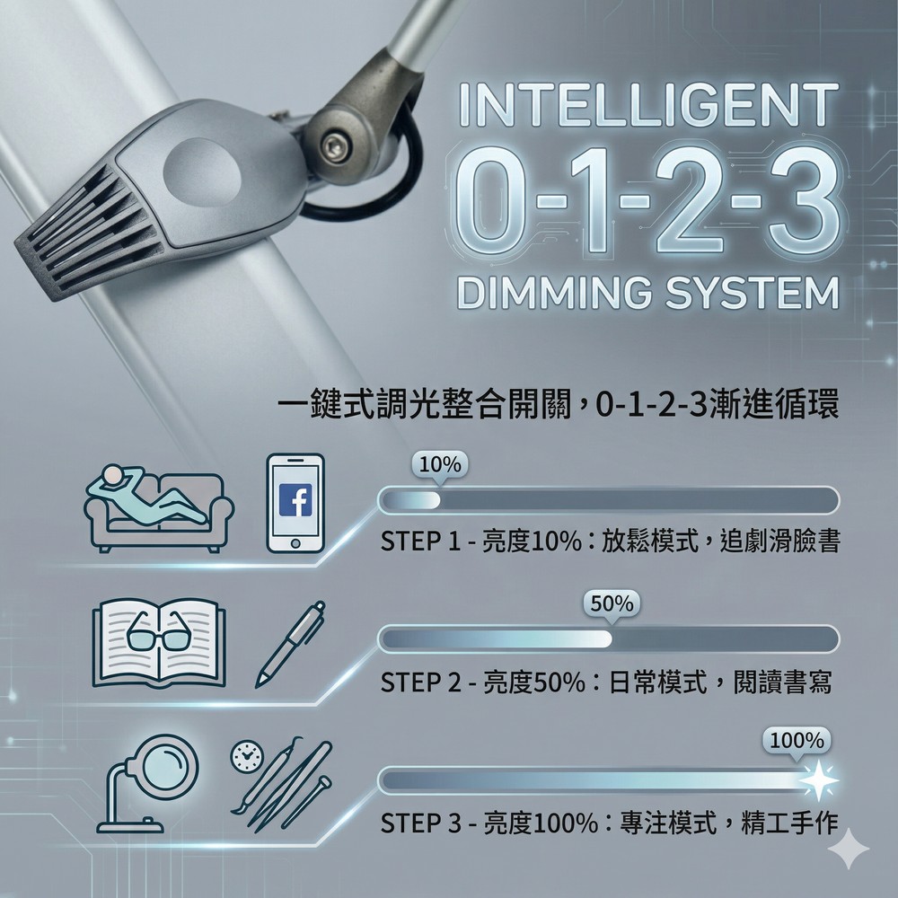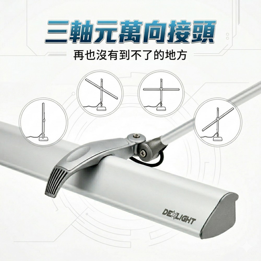 媲美T5檯燈的照射範圍實用的三段式觸控調光雙臂支架+萬向接頭=無限可能