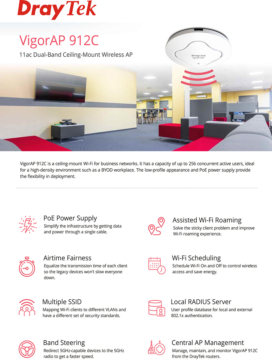 昌運監視器 DrayTek VigorAP 912C 台吸頂式無線基地台