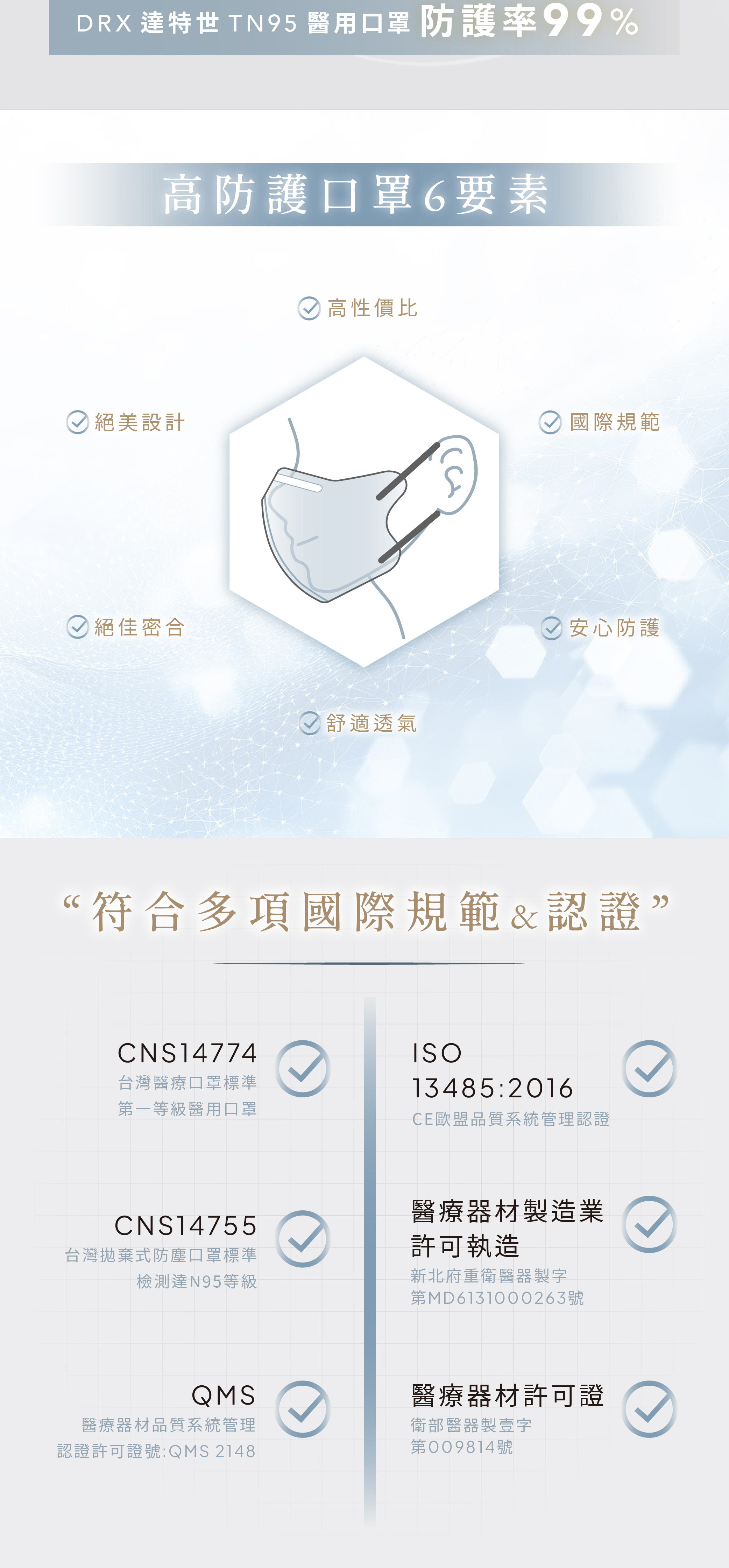 「消費者使用前應詳閱醫療器材說明書」●醫療器材品名: "達特世" 醫用口罩 (未滅菌)●醫療器材許可證字號:衛部醫器製壹字第008685號●許可證所有人:達特世生技有限公司●許可證所有人地址:新北市三重區溪尾街14號5樓●製造業者名稱:達特世生技有限公司●製造業者地址:新北市三重區溪尾街14號5樓之1及5樓之2●醫療器材商名稱:達特世生技有限公司●醫療器材商地址:新北市三重區溪尾街14號5樓●醫療器材商許可證字號:新北府重衛醫器販字第 MD6231017084 號●醫療器材商諮詢專線:02-22868689品牌:DRX 達特世規格:20入/1組貨源:自產自銷產地:台灣材質:不織布保存期限:4年「此商品屬個人衛生用品,不適用七天鑑賞期法規,拆封無猶豫期,如欲退貨請勿拆封。」【小提醒】服務時間:周一至週五 09:00 ~ 18:00 (例假日、國定假日除外)假日不出貨,顏色及數量已當下實際庫存量為主,庫存量不足將另行通知!※口罩屬個人衛生用品故經拆封後符合消保法第十九條所訂定之合理例外情事,無七日猶豫期,如欲退貨請勿拆封※※每批布的顏色,略有色差,依實際出貨商品為主※#不脫妝 #單片包裝 #防脫妝 #獨立包裝 #小顏 #日本口罩注意: 由於超商有寄貨限制,一筆訂單最多18盒 (如果超過18盒, 請分兩筆訂單下單)注意: 由於超商有寄貨限制,一筆訂單最多18盒 (如果超過18盒, 請分兩筆訂單下單)注意: 由於超商有寄貨限制,一筆訂單最多18盒 (如果超過18盒, 請分兩筆訂單下單)【商品資訊】●醫療器材品名: "達特世" 醫用口罩 (未滅菌)●醫療器材許可證字號:衛部醫器製壹字第008685號●規格:20片/盒●尺寸:9.5公分 X 8.5公分 (±0.5cm)●主要成分或材料:防潑水性不織布、醫用等級熔噴不織布、親膚性不織布●保存期限:4年●製造日期:2023●商品原產地:台灣●貨源:公司貨【醫療器材許可證】核定中文品名: "達特世" 醫用口罩 (未滅菌)核准字號:衛部醫器製壹字第008685號製造業者名稱:達特世生技有限公司製造業者地址:新北市三重區溪尾街14號5樓之1及5樓之2【販賣業醫療器材商許可執照】許可執照字號: 新北府重衛醫器販字第 MD6231017084 號醫療器材商名稱:達特世生技有限公司地址:新北市三重區溪尾街14號5樓諮詢專線電話:02-22868689
