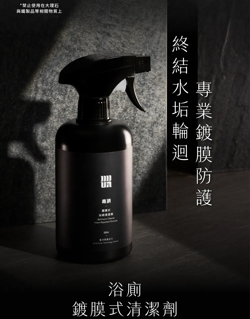 《浴廁清潔劑禁止使用在大理石與鐵製品等相關物質上》
