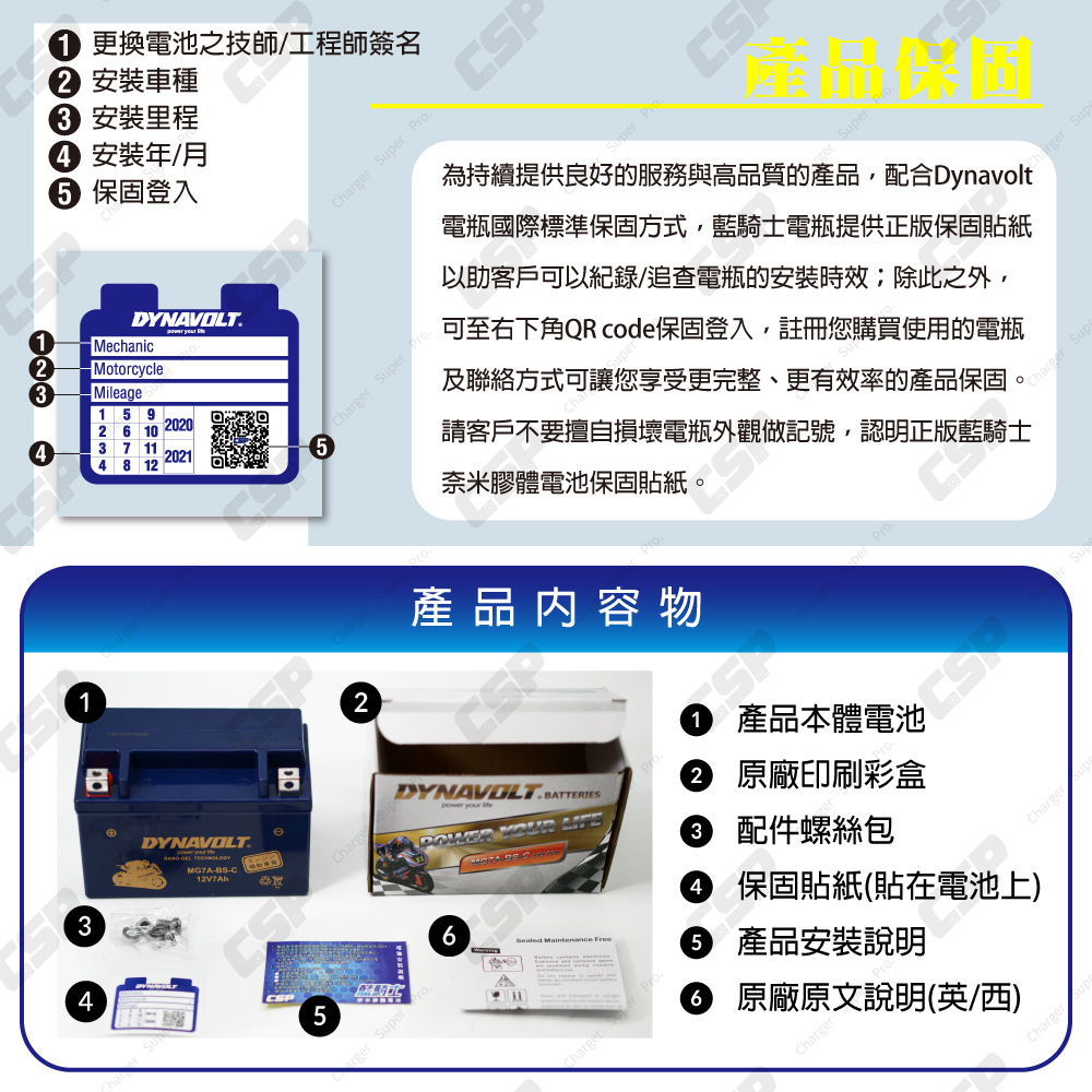 DYNAVOLT 藍騎士 MG7C-A 12V8Ah 奈米膠體電池 機車電瓶 對應 YB7C-A 機車電池 重機