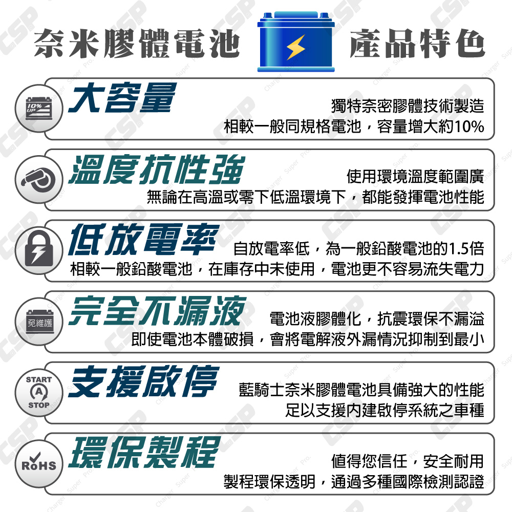 ‧藍騎士系列電池為液態膠體化電池,使用環境溫度範圍廣,無論在高溫或低溫環境下,也能發揮電池性能。