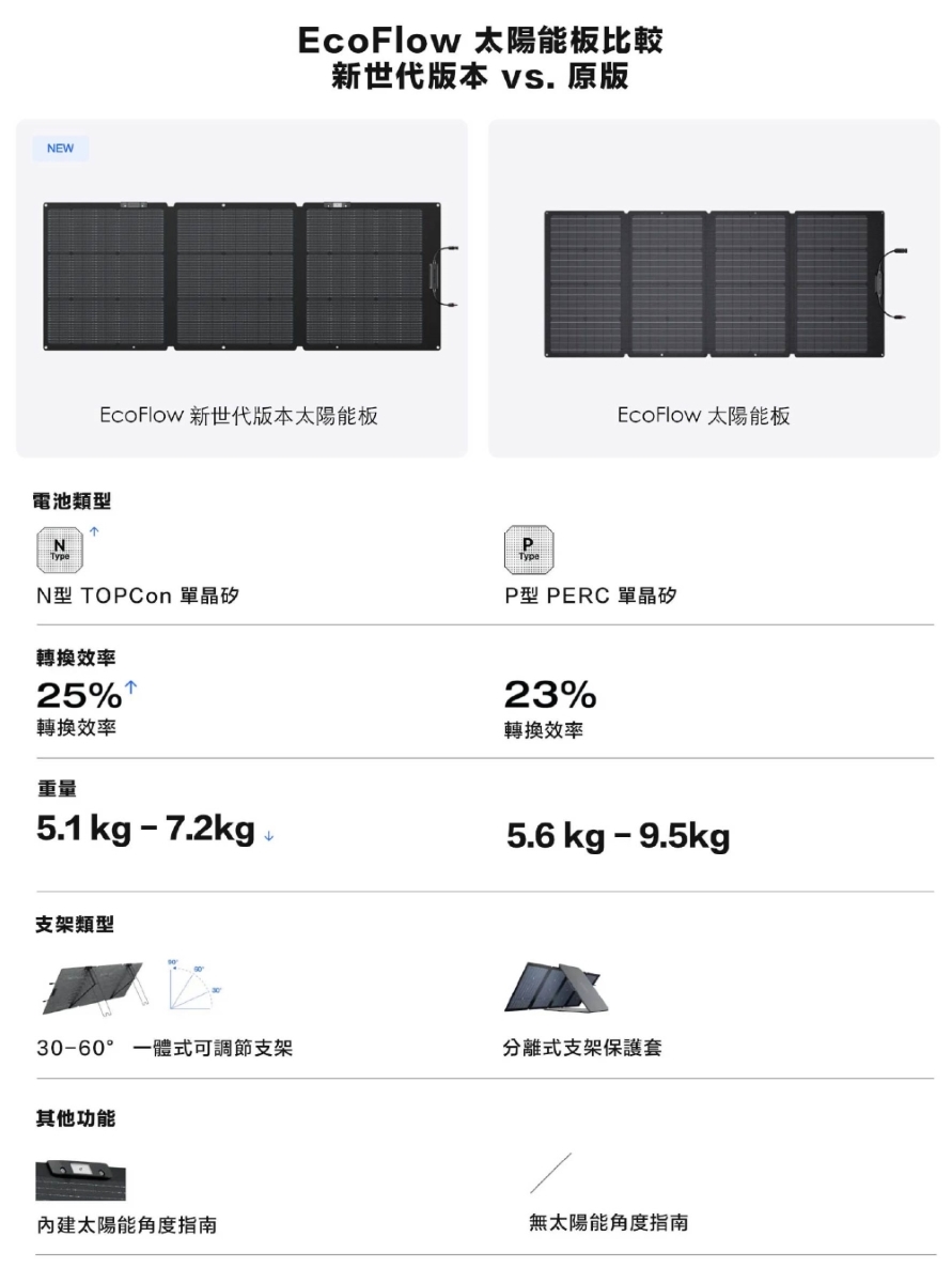 • 30–60° 可調式角度支架,內建太陽能角度導引器