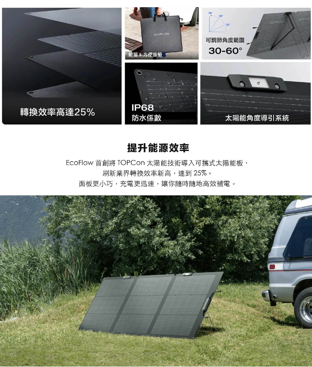 • EcoFlow 可攜式太陽能板附贈太陽能轉 XT60 充電線