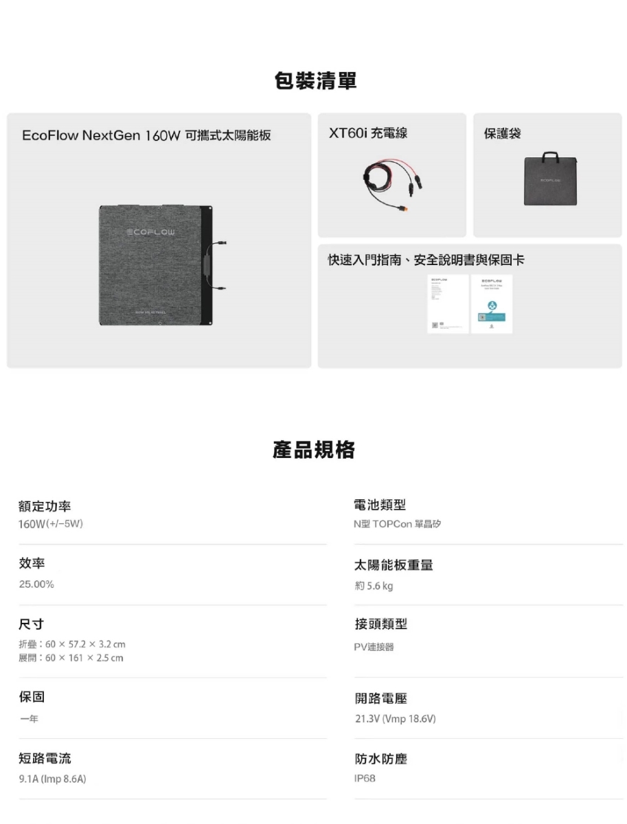 【EcoFlow 160W 便攜太陽能板(新世代版本)】