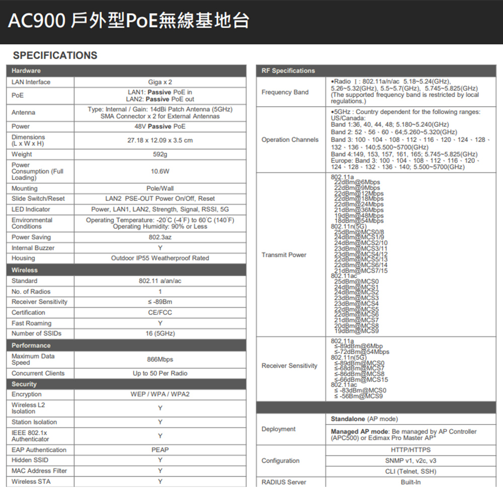 昌運監視器 EDIMAX 訊舟 OAP900 AC900 長距離室外無線基地台