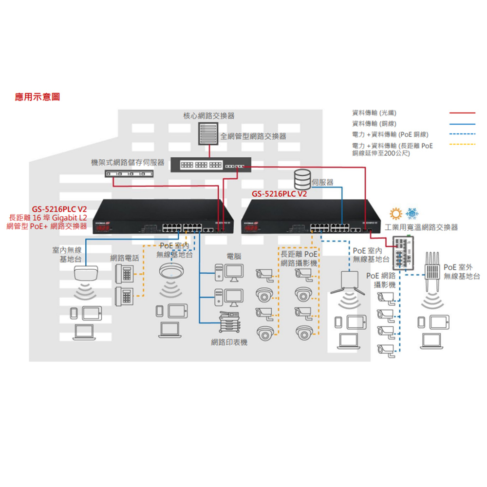 -PoE長距離供電及數據傳輸,保證至少達200公尺。