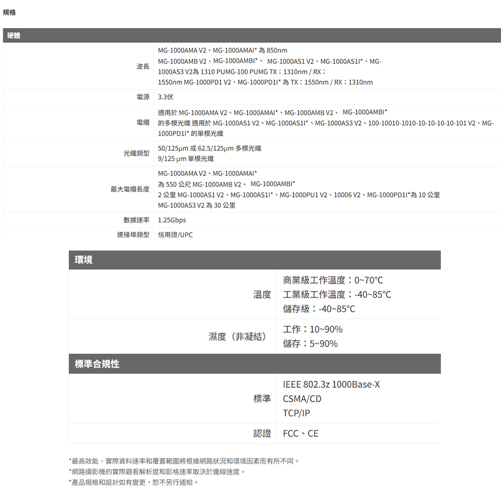 -符合IEEE 802.3z千兆乙太網路和光纖通道標準。