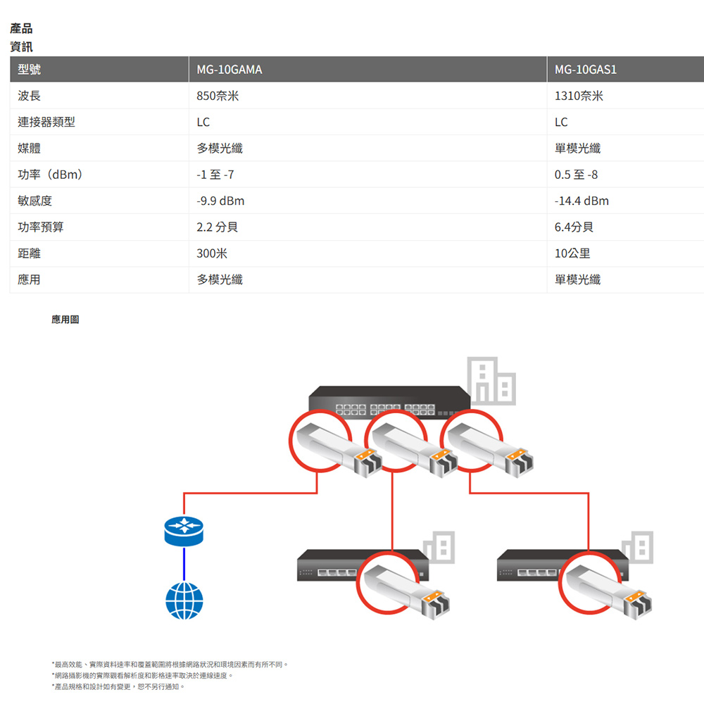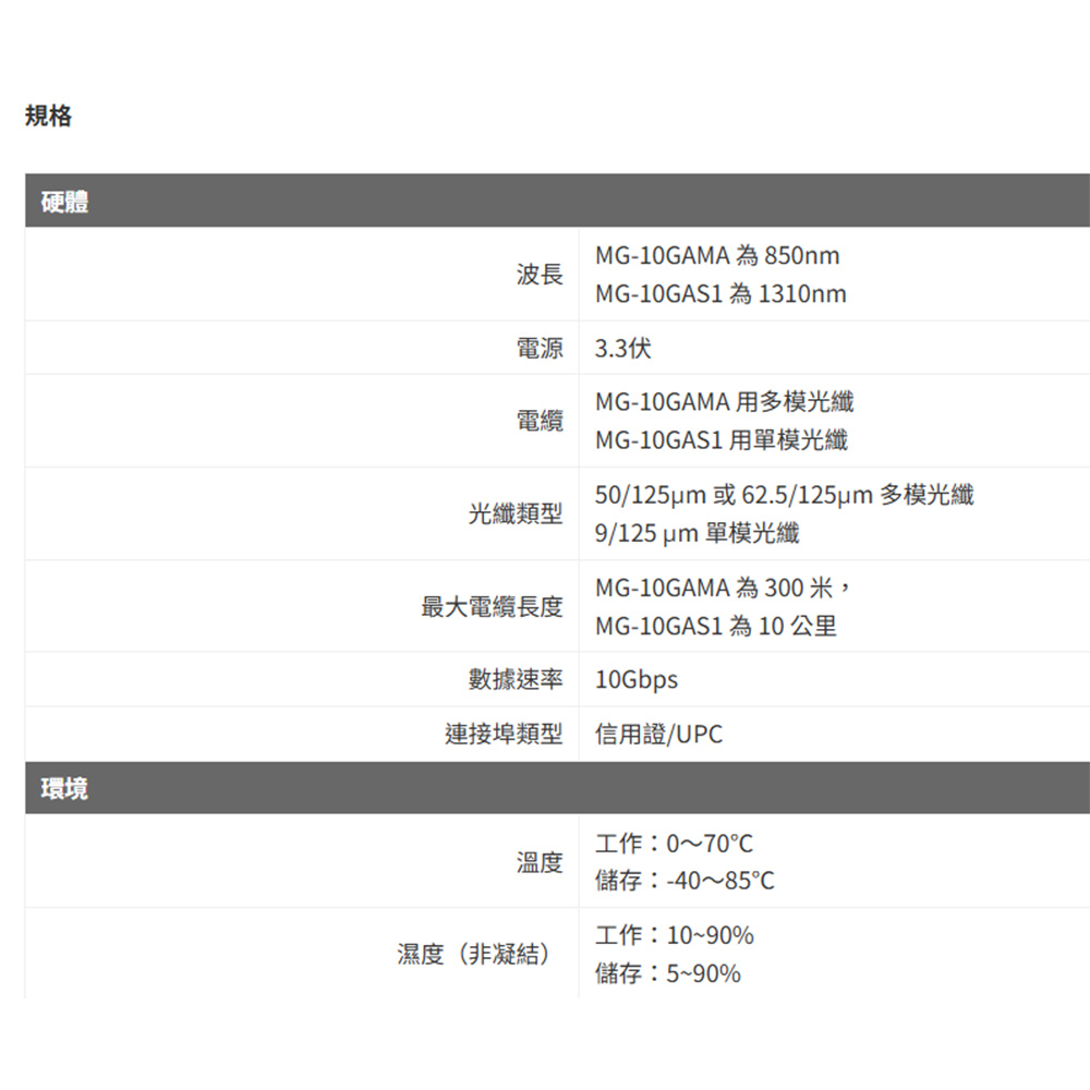 昌運監視器 EDIMAX 訊舟 MG-10GAS1 (MIT) 10G 光纖模組