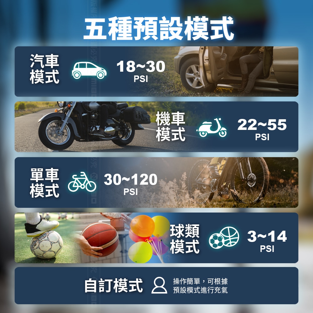 👍預設胎壓值,支持一鍵自動打停。