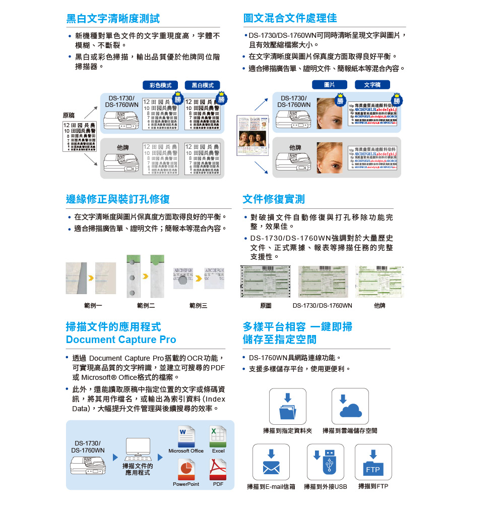 昌運監視器 EPSON 愛普生 DS-1760WN A4二合一平台饋紙網路掃描器 無須連接PC即可掃描