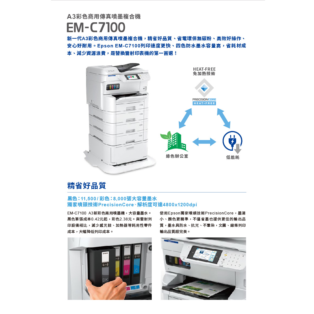 昌運監視器 EPSON 愛普生 Epson EM-C7100 彩色商用傳真噴墨複合機 自動雙面列印