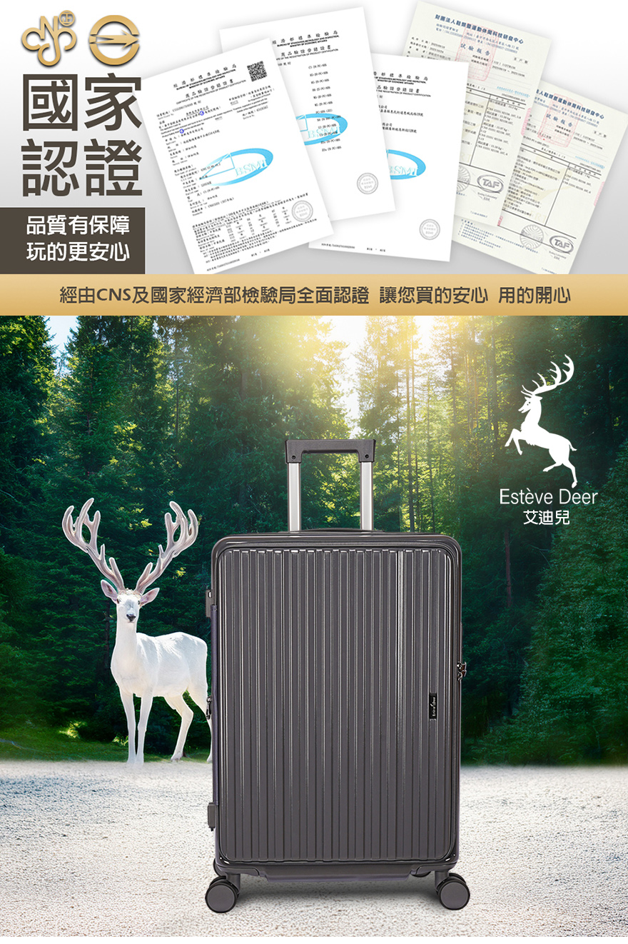 特色:隱藏式杯架、可掛式防磨腳座、PC+ABS耐刮箱體、擴充加大15-30%空間、360度靜音雙排飛機輪(55mm)、TSA國際認證密碼海關鎖、多段鋁合金拉桿、分區拉鏈網袋、X型束帶