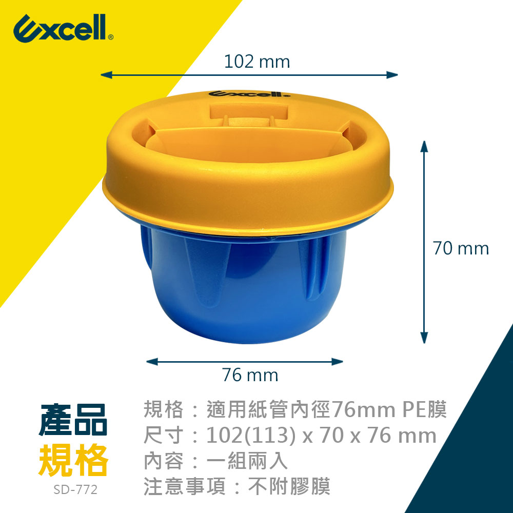 - 品牌:Excell 棧板膠膜旋轉器- 型號:SD-772- 規格:適用膠膜紙管內徑76mm的PE膜- 商品尺寸:102(113) x 70 x 76 mm- 注意事項:本賣場販售棧板膠膜旋轉器(一組兩入),不附膠膜。