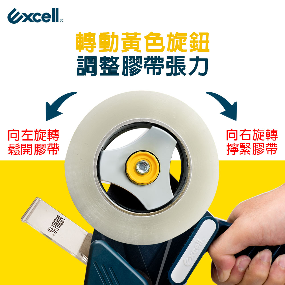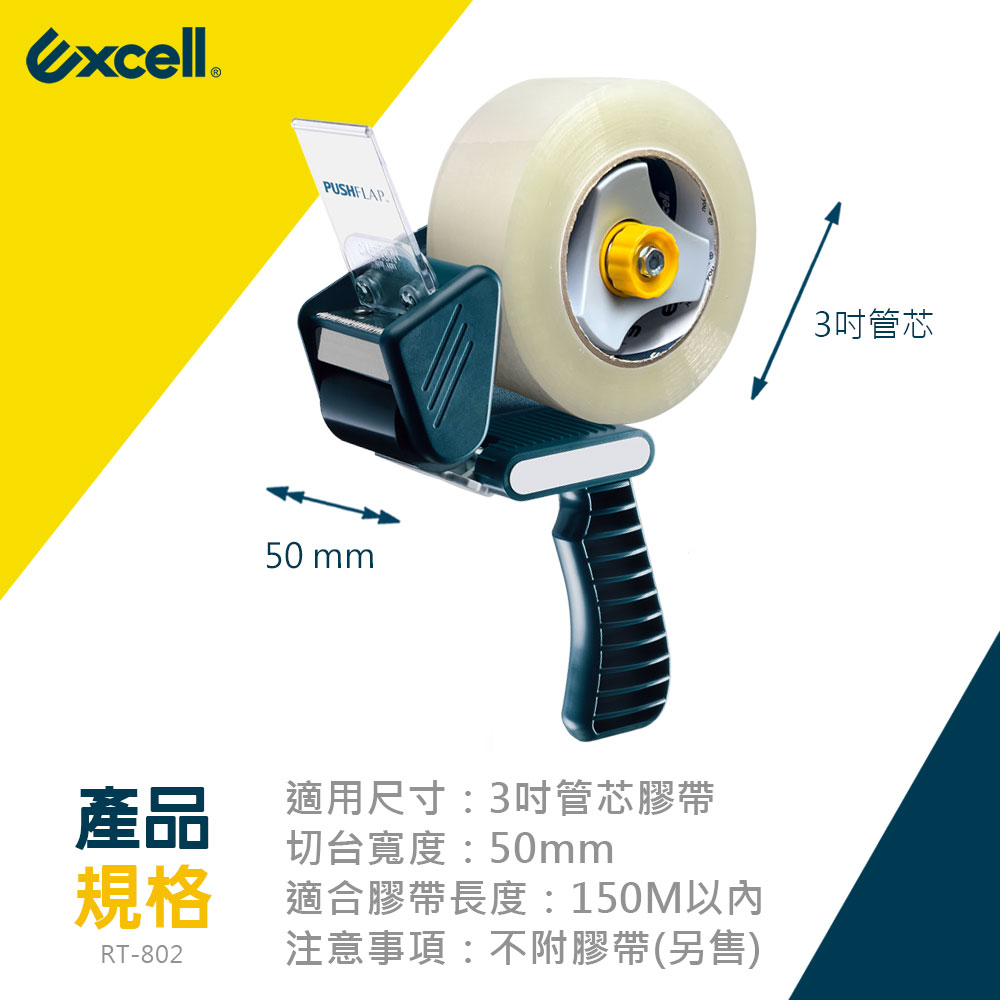 - 品牌:Excell 膠帶切割器 / 握把式封箱切台- 型號:RT-802- 適用尺寸:3吋管芯膠帶- 切台寬度:50mm- 適合膠帶長度:150M以內- 注意事項:本賣場販售單獨切台一只,不附膠帶,刀片不可替換。☆可轉動旋鈕:調整膠帶張力以獲得最佳使用,旋鈕向右旋轉擰緊膠帶,向左旋轉鬆開膠帶,使封箱動作更平順流暢。