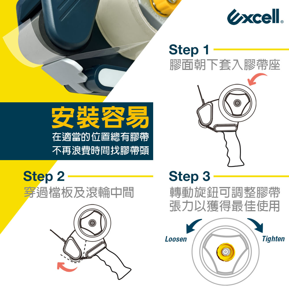 - 品牌:Excell 膠帶切割器 / 握把式封箱切台- 型號:RT-826- 適用尺寸:3吋管芯膠帶- 切台寬度:50mm- 適合膠帶長度:150M以內- 注意事項:本賣場販售單獨切台一只,不附膠帶,刀片不可替換。☆可轉動旋鈕:調整膠帶張力以獲得最佳使用,旋鈕向右旋轉擰緊膠帶,向左旋轉鬆開膠帶,使封箱動作更平順流暢。