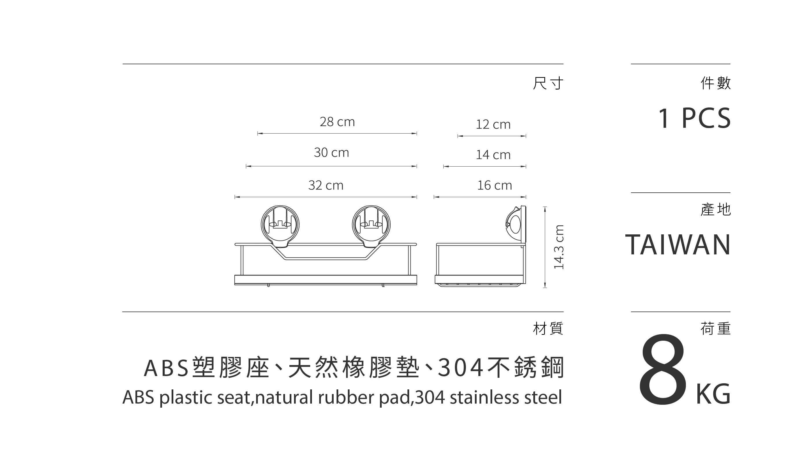• 簡約線條,乾爽收納• #304不鏽鋼、防潮、不生鏽• 居家收納必備• 適用於居家、衛浴、廚房等• 可承重: 8KG• 編號 420132-0011