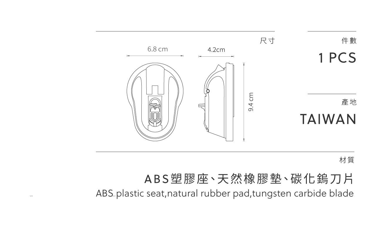 • 簡約設計,體積輕巧• 採用碳化鎢刀片,磨刀鋒利• 適用於居家、廚房、戶外旅遊等• 編號 446111-0628