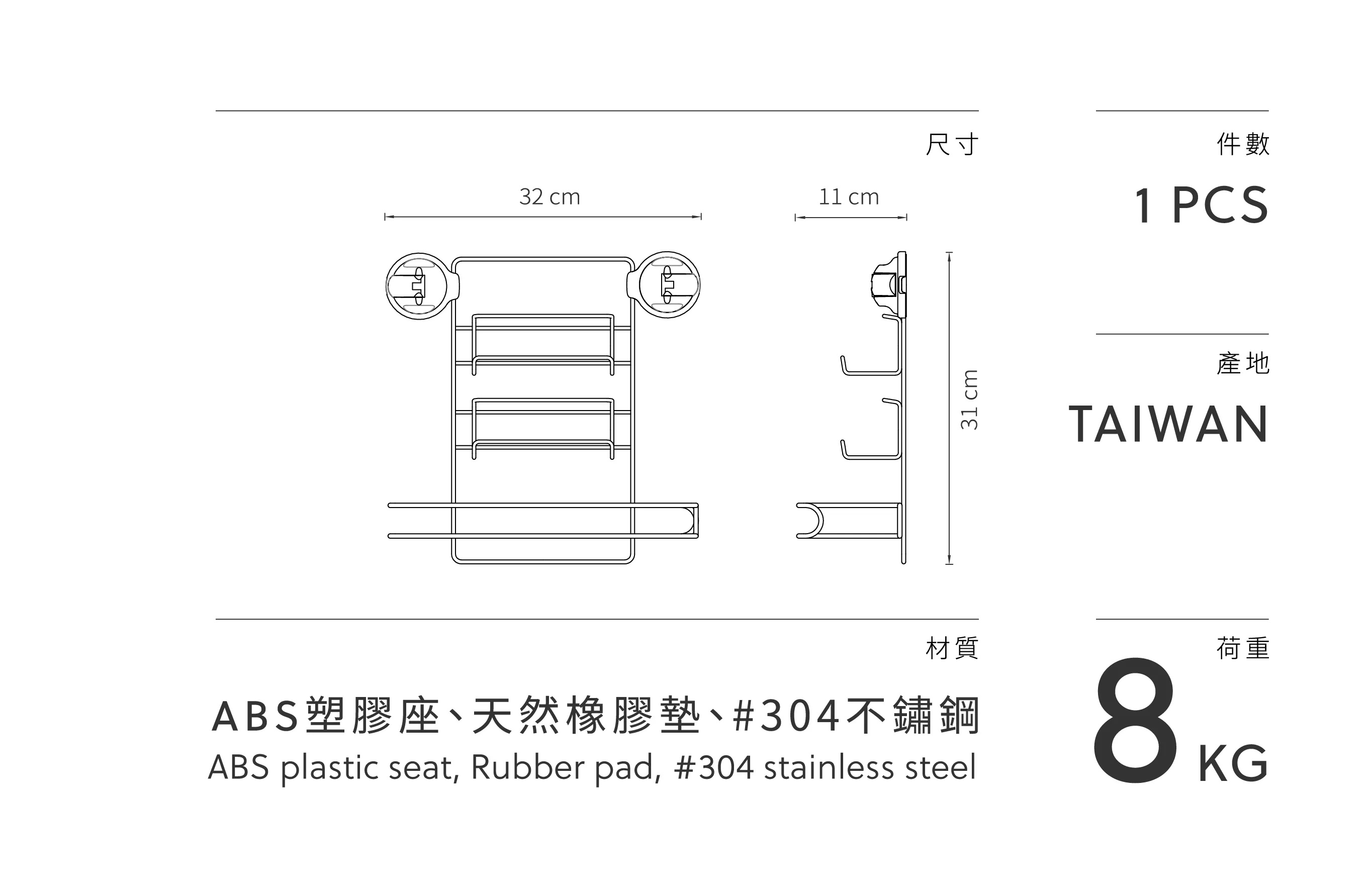 • 保鮮膜、烘培紙、廚房紙巾、捲筒衛生紙收納 • #304不鏽鋼、防潮、不生鏽• 可承重8KG• 編號 420442-0011