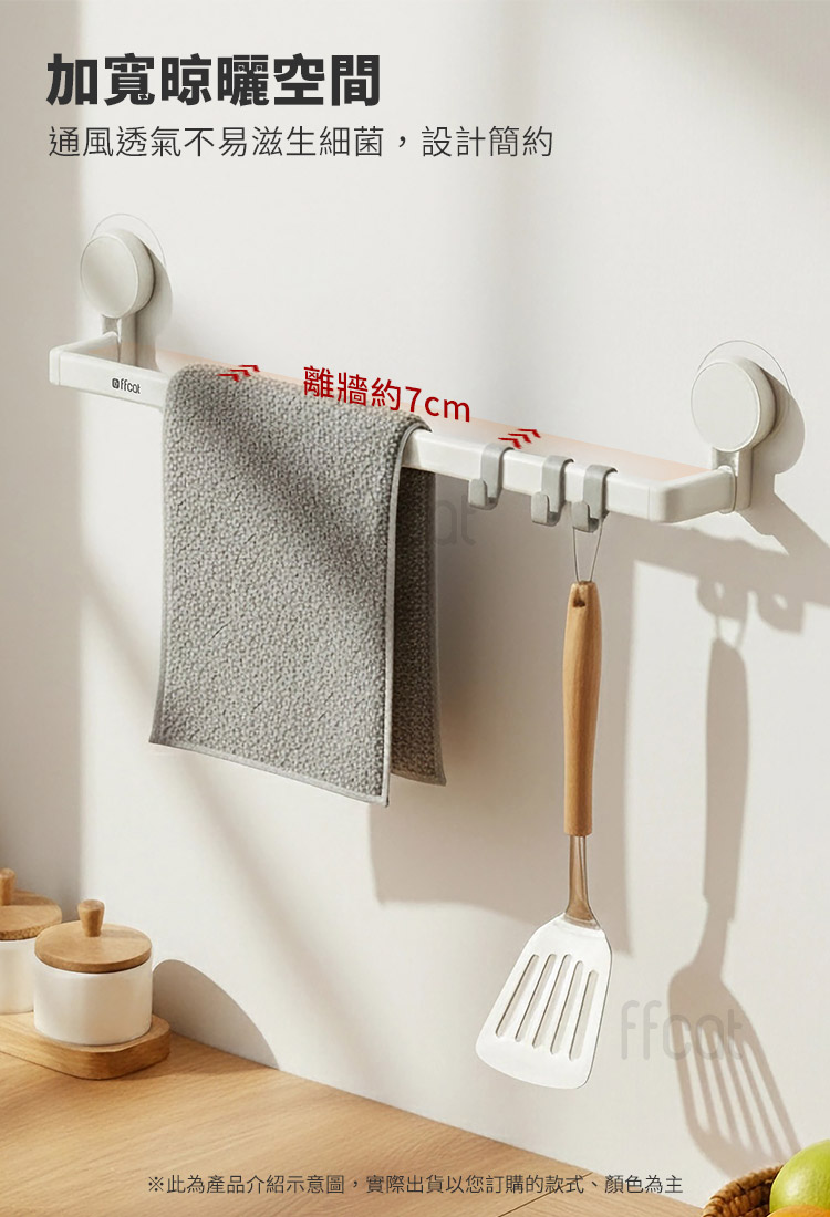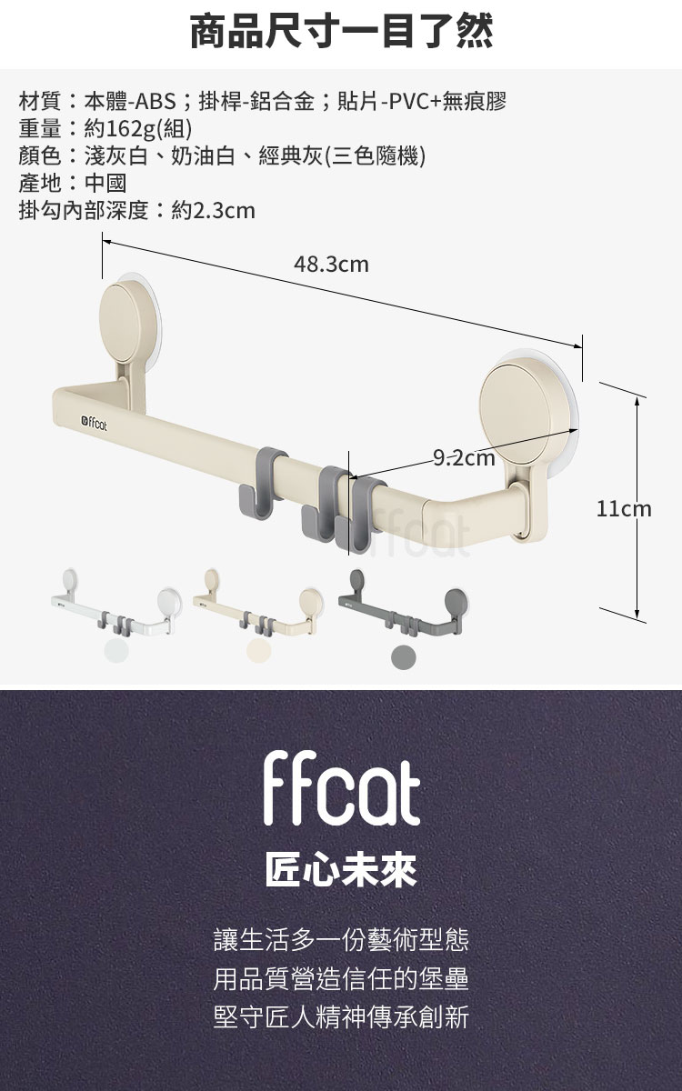 【ffcat】免打孔強力無痕貼短桿毛巾架|重新定義居家收納美學還在煩惱租屋不能鑽牆?或是擔心施工破壞昂貴的磁磚?ffcat這款「免打孔強力無痕貼短桿毛巾架」,專為追求效率與美感的你設計。我們深知居家收納的痛點,這不僅是一個掛桿,更是提升生活質感的關鍵細節。🌿✅ 強大承重,使用無虞:實測可承重 6KG(如 6000ml 水瓶懸掛),穩定性經得起考驗,不必擔心半夜聽到掉落聲。✅ 免釘安裝,瞬時即用:採用高品質無痕貼,撕開即貼,不分男女老少都能輕鬆上手,完全不傷牆面。✅ 靈活收納空間:特設可移動式掛勾,無論是浴巾、沐浴球還是刷具,都能依據需求調整間距,告別雜亂。✅ 加寬通風設計:加寬 7cm 的晾曬空間,讓毛巾不再重疊擁擠,通風快乾不生黴菌。✅ 北歐簡約視覺:奶油白配上俐落線條,完美融入北歐、現代或日系簡約風格。✨ 使用後你會發現...以前浴室總是濕漉漉、毛巾沒地方掛?裝上後,你會發現空間瞬間變得清爽。不必動用電鑽,牆面依然完美如新。移動掛勾的設計讓收納變得像遊戲一樣自由,每次進入浴室,都能感受到視覺上的舒適與秩序。👉 收納一刻都不能等如果你正在找:✔ 不破壞牆面✔ 可承重日常用品✔ 可拆卸無痕✔ 可調整掛勾距離這款短桿毛巾架就是高實用解法。提升居家品質不需要大動干戈,只需一個對的工具。立即入手,讓牆面成為你的收納好幫手!不論是浴室、廚房、洗衣機側邊或玄關牆面,都能成為實用掛架空間。#免打孔毛巾架 #浴室收納神器 #租屋族必備 #無痕貼掛架 #壁掛式收納📣 FAQ (常見問答)Q1:這款毛巾架真的不用鑽孔嗎?A1:是的,採用無痕貼片設計,免釘免鑽即可安裝於光滑硬質表面。Q2:可以安裝在哪些牆面?A2:適用光滑磁磚、玻璃、不鏽鋼等光滑平整表面,不建議安裝於壁紙、粗糙水泥或粉刷牆。Q3:掛勾可以調整位置嗎?A3:可以,掛勾可左右滑動,自由調整間距。Q4:拆除會留殘膠嗎?A4:使用吹風機對準背膠加熱軟化,即可輕鬆撕除不留痕跡。Q5:可以掛重物嗎?A5:承重測試6KG,日常毛巾與小物使用無虞,請勿長期超重使用。Q6:安裝後多久可以開始掛東西?A5:建議安裝完畢並排擠出背膠空氣後,靜置 24 小時讓黏性達到最佳狀態再掛物。注意事項:1.安裝前請確保牆面乾燥、無油汙、無灰塵,以確保背膠效能。2.避開接縫, 黏貼時應避開瓷磚間的接縫處,確保背膠完全貼合。3.承重限制, 建議安全承重範圍在 6kg 以內,請勿懸掛貴重、易碎或超重物品。4.環境溫度, 建議在 5°C 至 45°C 的環境下使用,避免陽光長期直射。5.氣泡排除, 黏貼背膠時請由內向外用力按壓,務必將空氣完全排出。