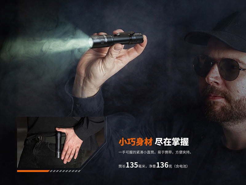 ◎防滾、防滑的筒身設計,配置抱夾,方便夾持