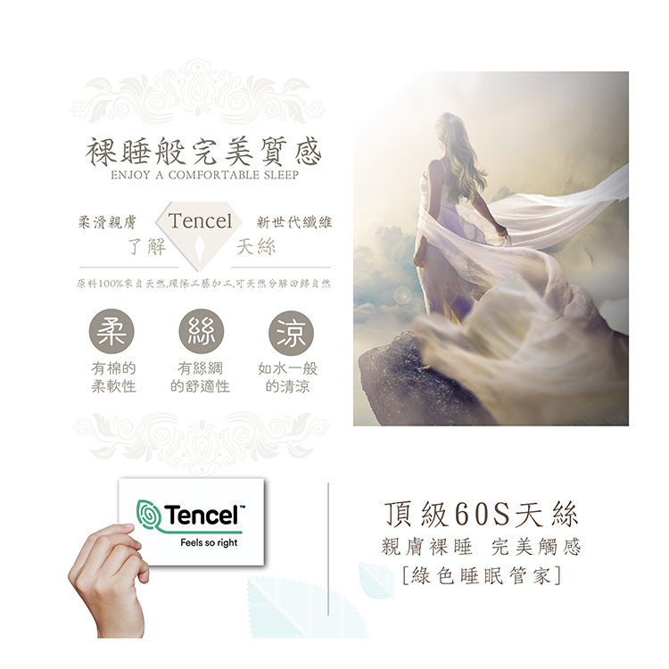 ★材質:表布:100%萊賽爾纖維(60支頂級天絲)底布─100%萊賽爾纖維(60支頂級天絲)填充物─100%聚酯纖維(超細纖維)