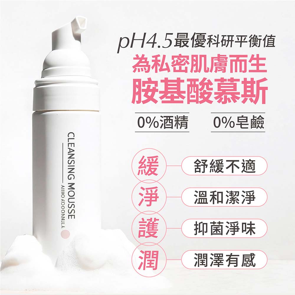 使用胺基酸私密柔護慕斯 可以幫助溫和去除私密肌膚的髒污、汗水、調理肌膚,進而幫助肌膚更加光滑柔嫩,pH5.5洗後保濕溫和舒適是您很好的選擇!