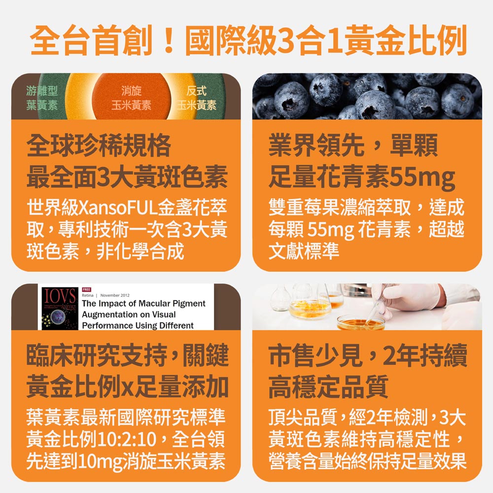 ➤ 全球稀少金盞花萃取物,3合1黃斑色素